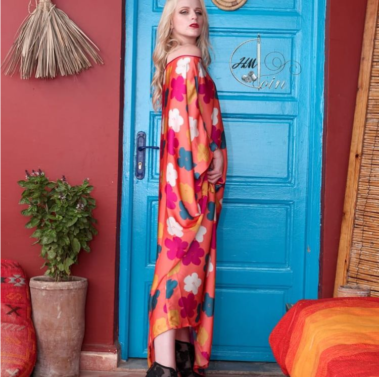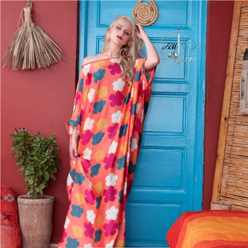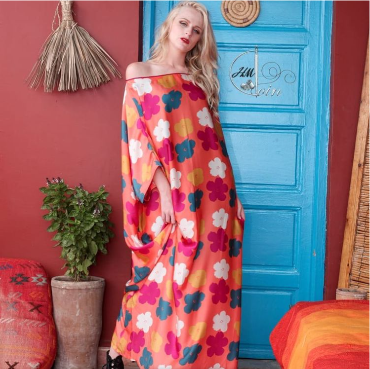 Gandoura robe en satin col bateau